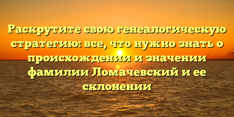 Исследуйте происхождение фамилии Ломачевский и создайте эффективную генеалогическую стратегию: советы и рекомендации