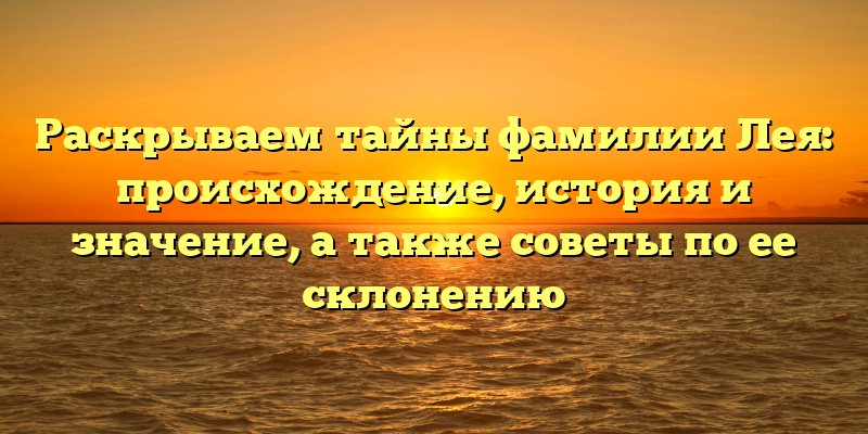 Лея: Происхождение, История и Значение Фамилии, а также Советы по Склонению — Раскрытие Тайн