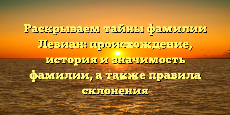 - Фамилия Левиан: история происхождения, значимость и правила склонения — разбираем все тайны!