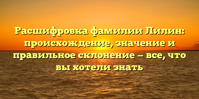 - Разбираем фамилию Лилин: все, что нужно знать о происхождении, значении и правильном склонении.