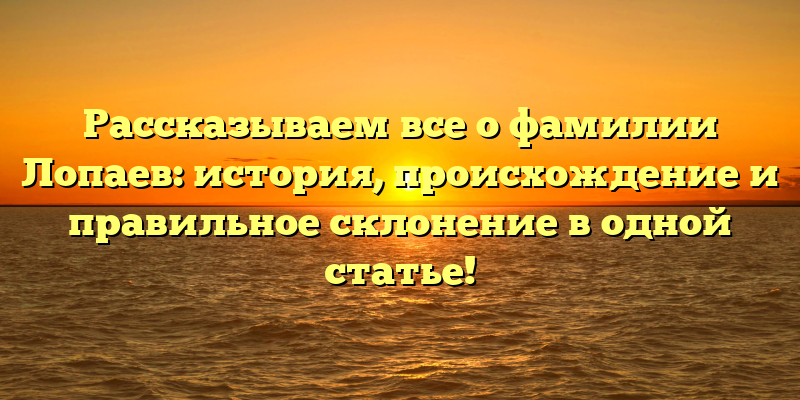 - Фамилия Лопаев: история, происхождение и правильное склонение — все, что вам нужно знать!