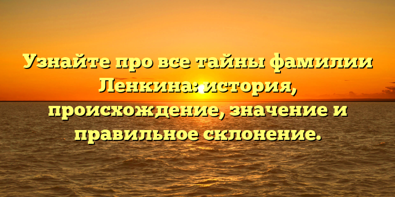 Раскрываем тайны фамилии Ленкина: история, происхождение, значение и правила склонения