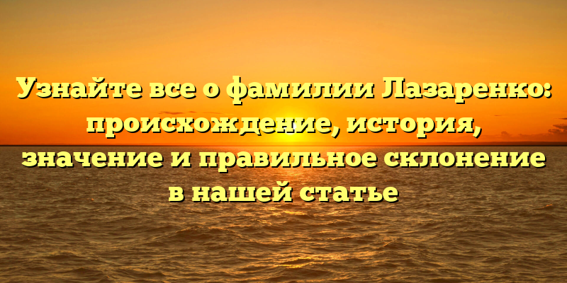 В этой статье вы узнаете все о фамилии Лазаренко: ее происхождение, историю, значение и правильное склонение. Будьте внимательны и читайте внимательно!
