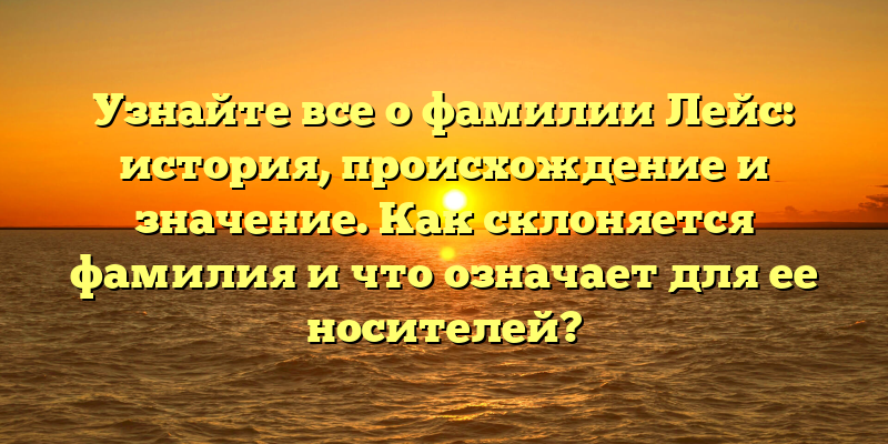 - Фамилия Лейс: от истории до значения — основная информация и правила склонения для исследования вашего происходжения.