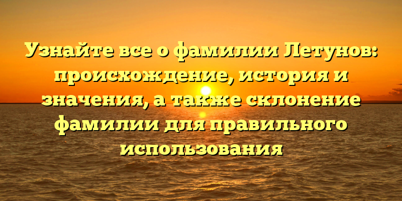 - Открытие тайн фамилии Летунов: происхождение, значения и правильное склонение для использования