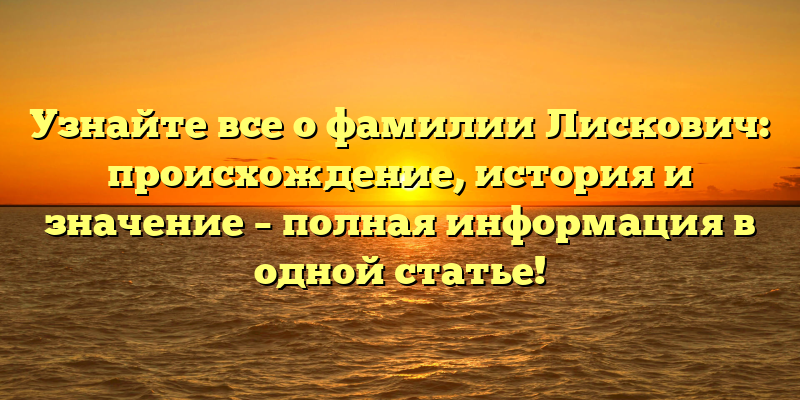 - Фамилия Лискович: происхождение, история и значение — обзор полной информации в одной статье