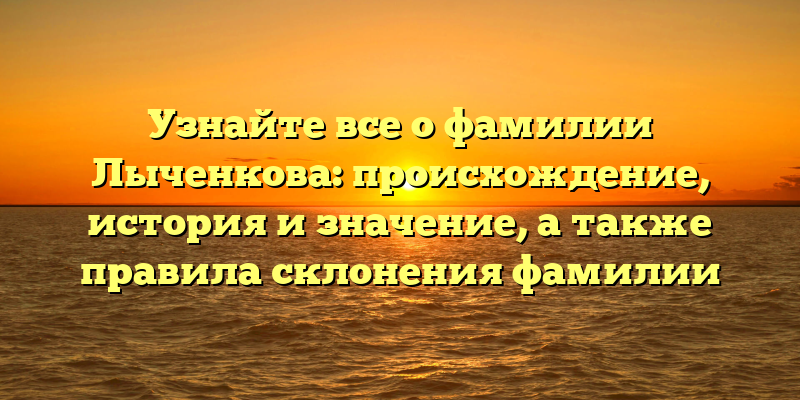 - История и происхождение фамилии Лыченкова: узнайте все о ее значении и правилах склонения