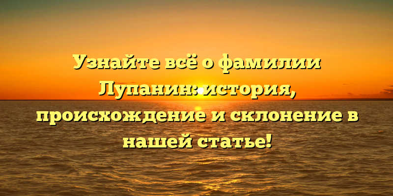- Фамилия Лупанин: история, происхождение и склонение в нашей подробной статье — все, что вы должны знать!