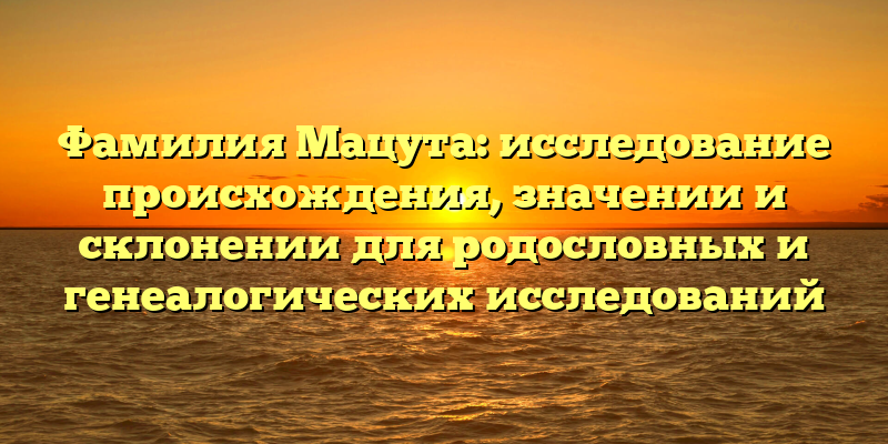 - Фамилия Мацута: история происхождения, значение и правила склонения для генеалогических исследований
