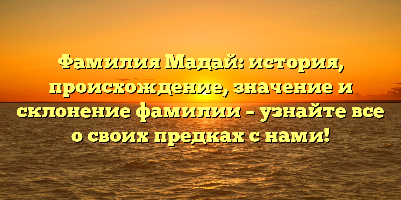 Изучение происхождения фамилии Мадай может помочь нам лучше понять не только своих предков, но и собственное происхождение. В данной статье мы рассмотрим все аспекты этой фамилии, включая ее историю, происхождение, значение и склонение.