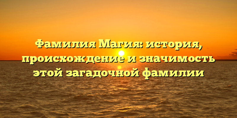 - Откройте тайны загадочной фамилии Магия: история происхождения и уникальность