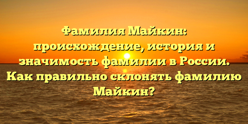 - Фамилия Майкин: история происхождения и значение в культуре России. Как правильно склонять фамилию Майкин для успешного использования?