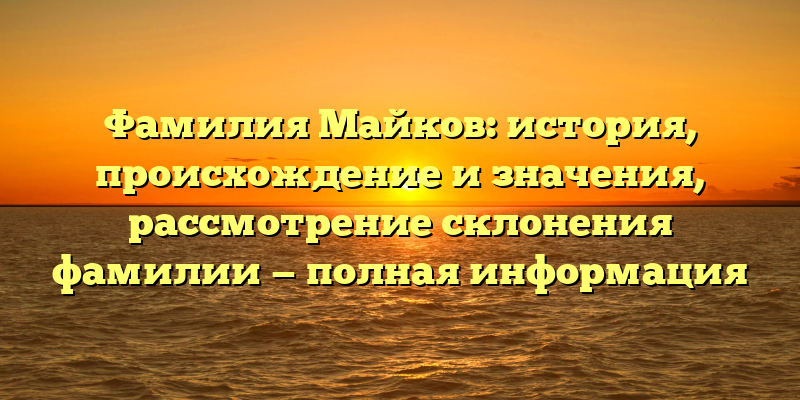 - Невероятная история фамилии Майков: происхождение, значения и способы склонения — полный гид для исследования своих корней.