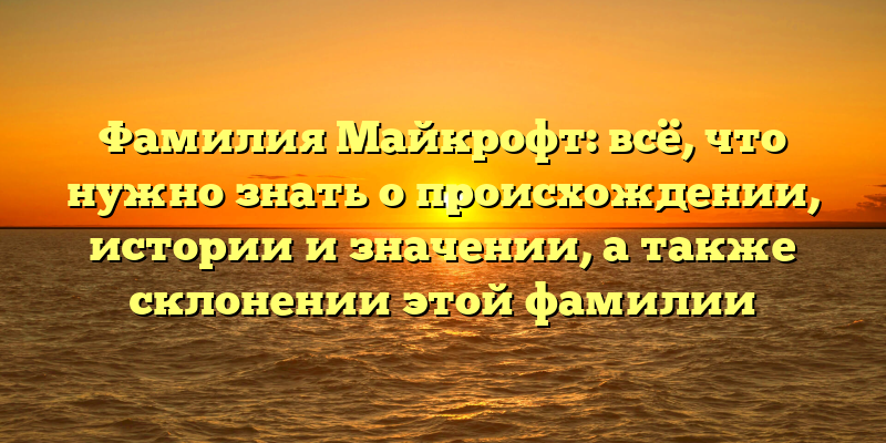 - Фамилия Майкрофт: происхождение, история и значимость, а также склонение и правила использования