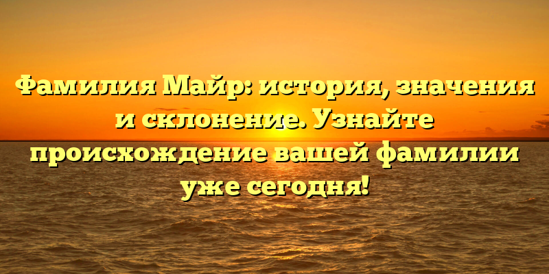 - Раскрываем тайны фамилии Майр: история, значения и склонение — вся правда в одной статье!