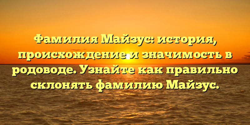 - Фамилия Майзус: история, происхождение и родовая значимость. Узнайте, как склонять фамилию Майзус правильно с помощью нашей статьи