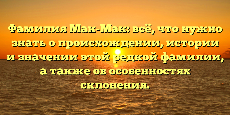 - Фамилия Мак-Мак: история, происхождение и значимость редкой фамилии, а также особенности ее склонения.