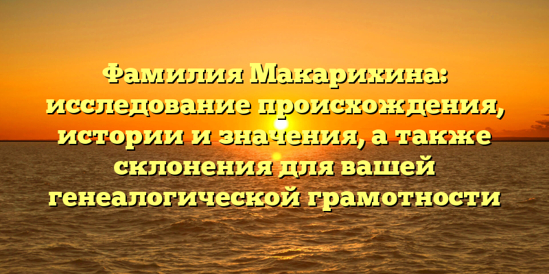 - Исследование происхождения и значения фамилии Макарихина: практические советы для генеалогической грамотности