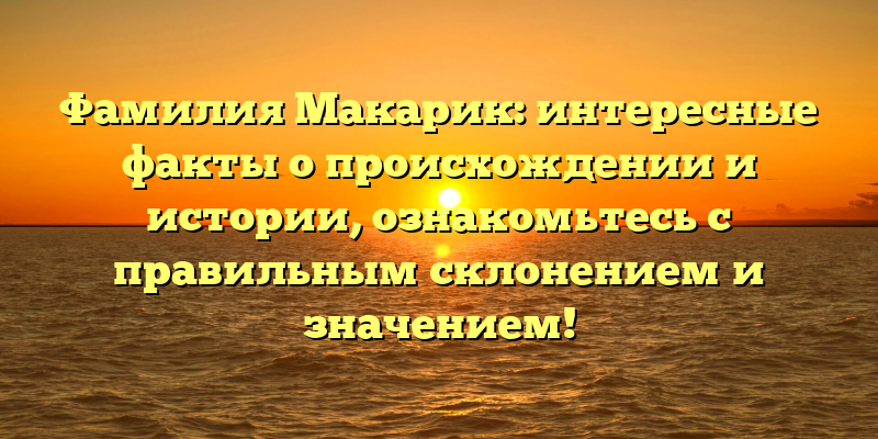 - Последние открытия: история происхождения фамилии Макарик и правильное склонение — все, что вы хотели знать!