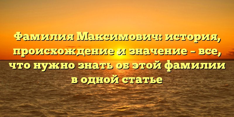- Фамилия Максимович: история, происхождение и значение – полный гид для любопытных и генеалогов