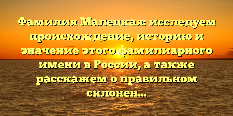 - Фамилия Малецкая в России: происхождение, история и значение, а также советы по правильному склонению