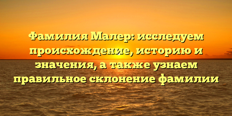 Погружаемся в историю и значения фамилии Малер и узнаем правильное склонение: генеалогический обзор.