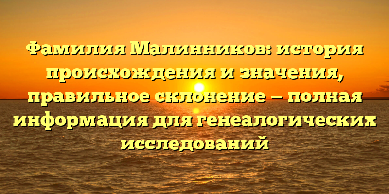 - Фамилия Малинников: история, значения и правильное склонение — все, что нужно знать для успешных генеалогических исследований