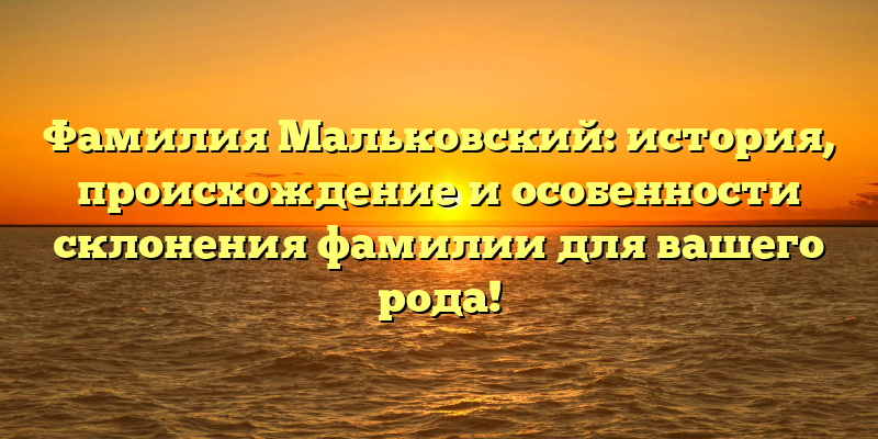 - Познайте историю и происхождение фамилии Мальковский: советы по склонению для вашего рода!