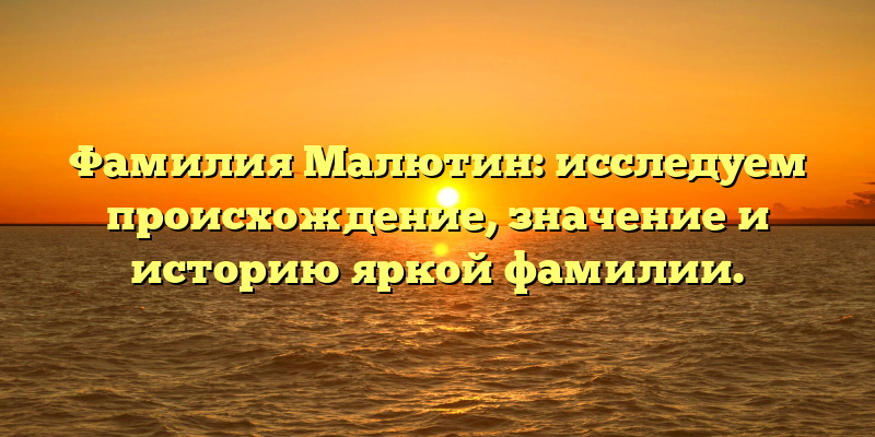 Малютин — это яркая, узнаваемая фамилия, но какова ее история и происхождение? В этой статье мы будем исследовать фамилию Малютин: ее происхождение, значение и исторические события, которые могли повлиять на распространение этой фамилии.