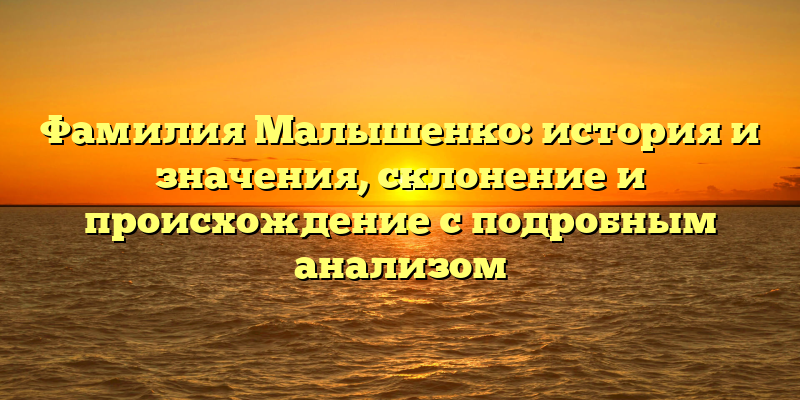 - Фамилия Малышенко: происхождение, значения и склонение — история, которую стоит знать