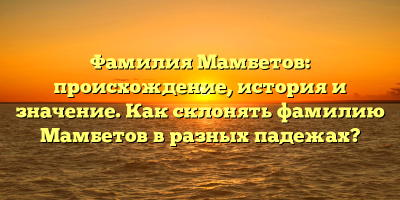 - Фамилия Мамбетов: происхождение, история и значение. Как правильно склонять ее в разных падежах?