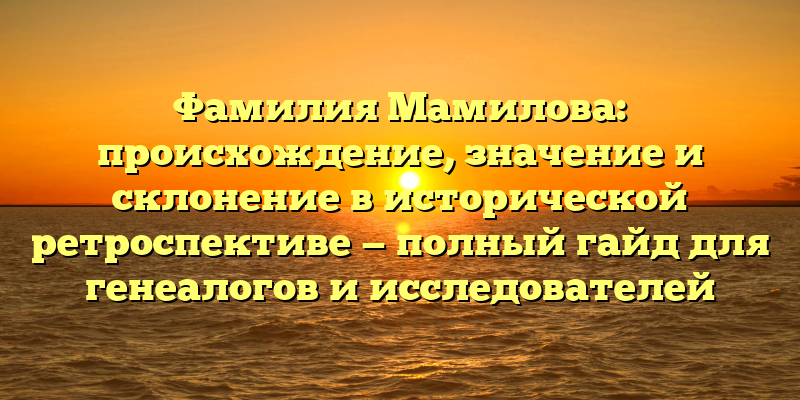 - Откройте тайны происхождения и значения фамилии Мамилова: генеалогический гид в исторической перспективе
