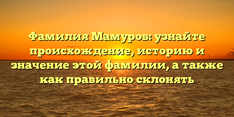 - Фамилия Мамуров: происхождение, история и значение, а также правила склонения — все что нужно знать!