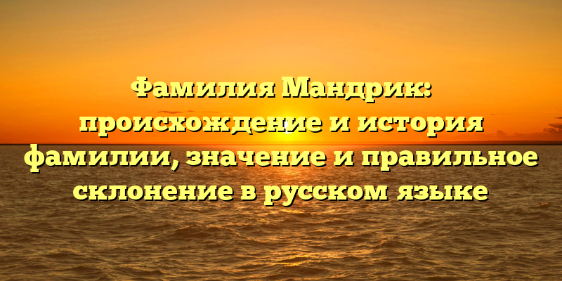 - Мандрик: происхождение и история фамилии, значение и правильное склонение в русском языке – все, что вы хотели знать