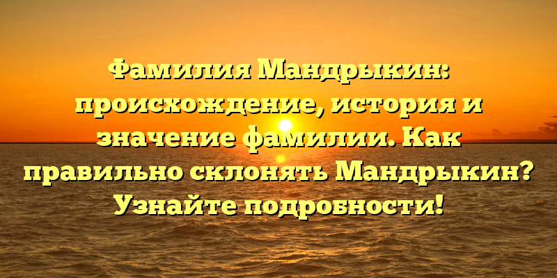 - Фамилия Мандрыкин: история происхождения и значение, советы по правильному склонению — узнайте все подробности!