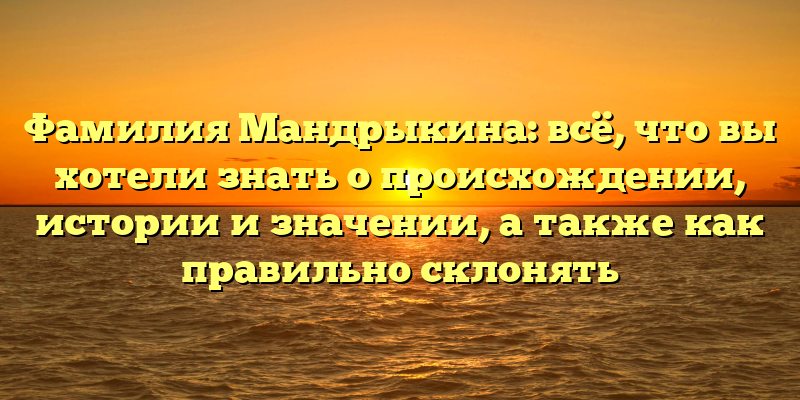 - Фамилия Мандрыкина: происхождение, история и значение, и секреты правильного склонения в одной статье