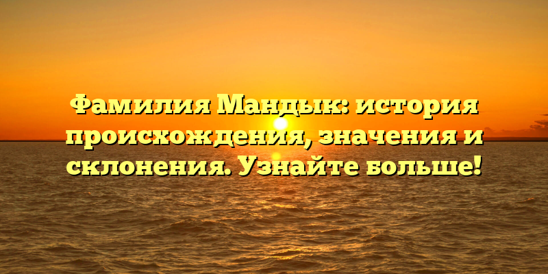 - Фамилия Мандык: происхождение, значения и склонения — исследование генеалогической истории.
