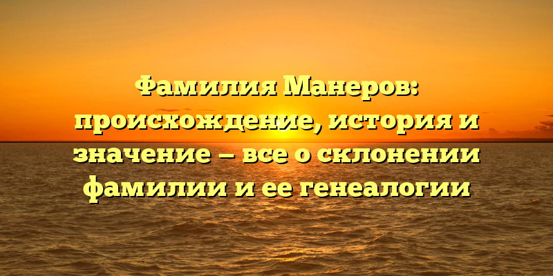 - Исследование фамилии Манеров: происхождение, история и значение, а также подробное рассмотрение генеалогии и склонения названия