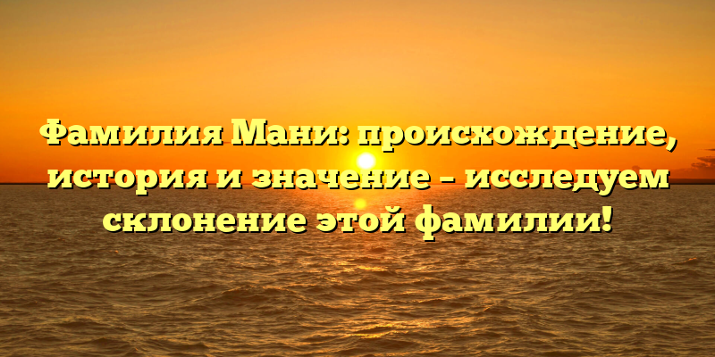 - Изучаем происхождение и историю фамилии Мани: откуда она взялась и как ее правильно склонять?