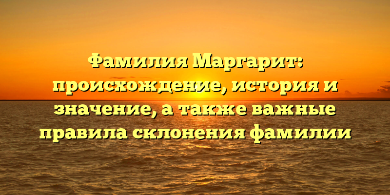 Если вы хотите узнать больше о происхождении и значении фамилии Маргарит, а также о важных правилах ее склонения, то этот материал является идеальным источником для вас.