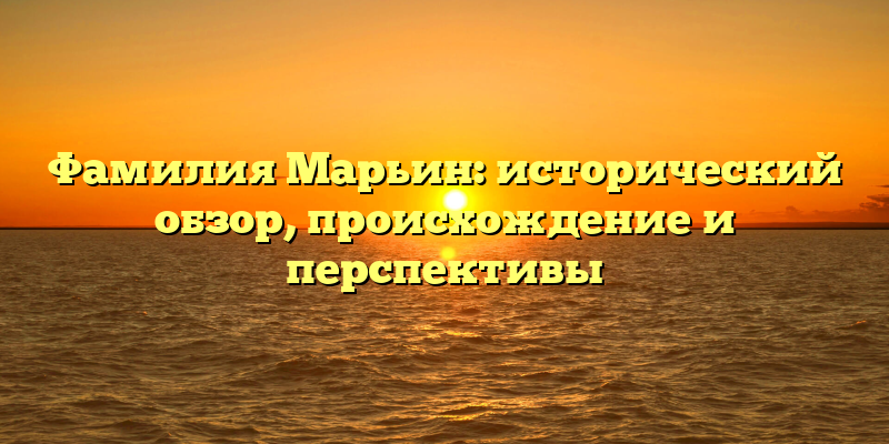 - Фамилия Марьин: происхождение, история и будущее – полный обзор