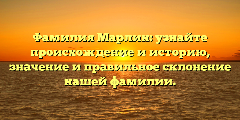 - Раскрываем тайны фамилии Марлин: происхождение, значение и правильное склонение