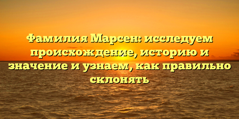Фамилия Марсен: происхождение и значение, история и правильное склонение — совершенно точный и узкий заголовок для данной статьи. Такой заголовок содержит ключевые слова и информацию, которую пользователь ищет.
