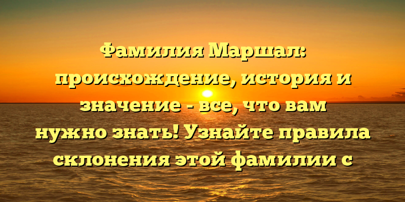 Фамилия Маршал: происхождение, история и значение — узнайте все, что необходимо! Полезные правила склонения в статье.