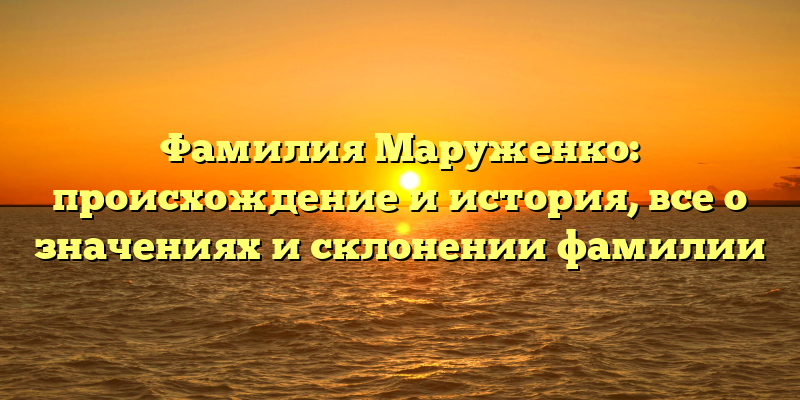 - Раскрываем историю фамилии Маруженко: все о происхождении, значениях и склонении