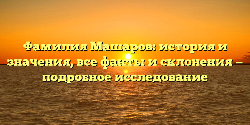 - Фамилия Машаров: полное исследование и значимость в истории, включая все факты и склонения