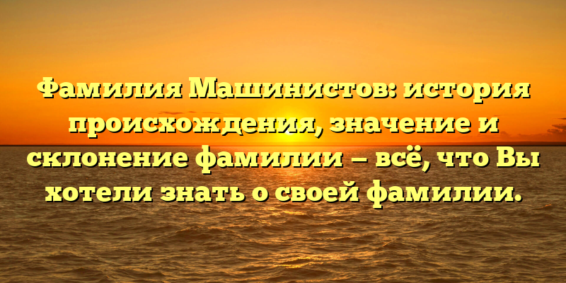 Узнайте всё о своей фамилии Машинистов: происхождение, значение и правильное склонение в статье на нашем сайте.