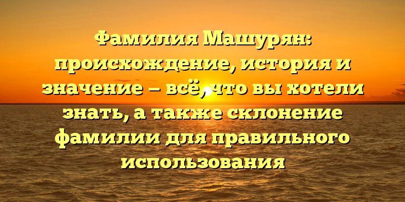 - Погружаемся в историю: происхождение и значение фамилии Машурян, а также секреты правильного склонения