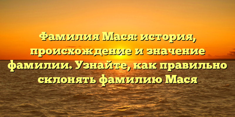 - Фамилия Мася: история, происхождение и значение. Подробный гайд по склонению фамилии для правильного использования в обращении | Наш сайт