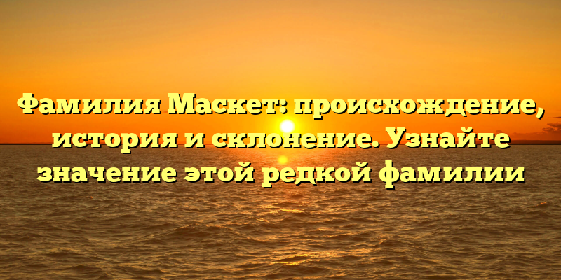 Загадочная фамилия Маскет: происхождение, история и склонение — история ее происхождения и значение, которое скрывается за этим редким наименованием.